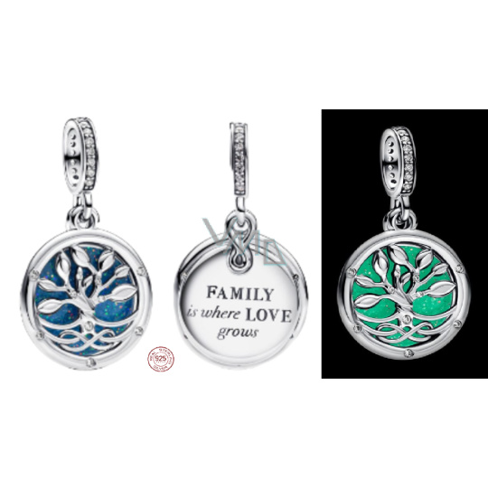 Charm Sterlingové stříbro 925 Věčná pouta zářící ve tmě, strom a nekonečno, luminozní přívěsek na náramek rodina