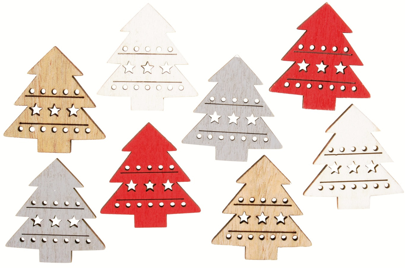 Stromek dřevěný přírodní, šedá, bílá, červená 3,5 cm 8 kusů