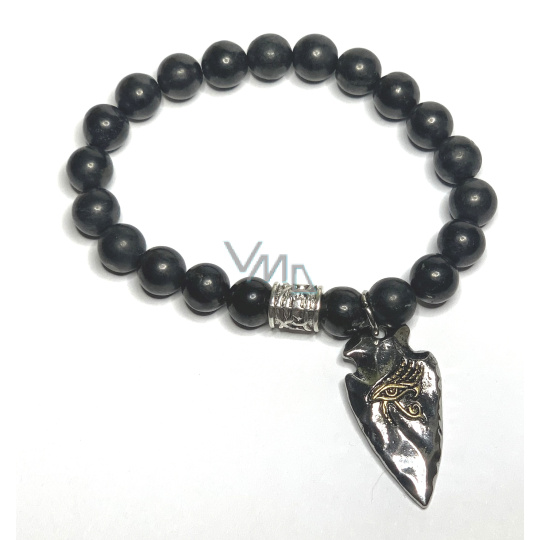 Šungit + Horovo oko náramek elastický přírodní kámen, kulička 8 mm / 16 - 17 cm, kámen života