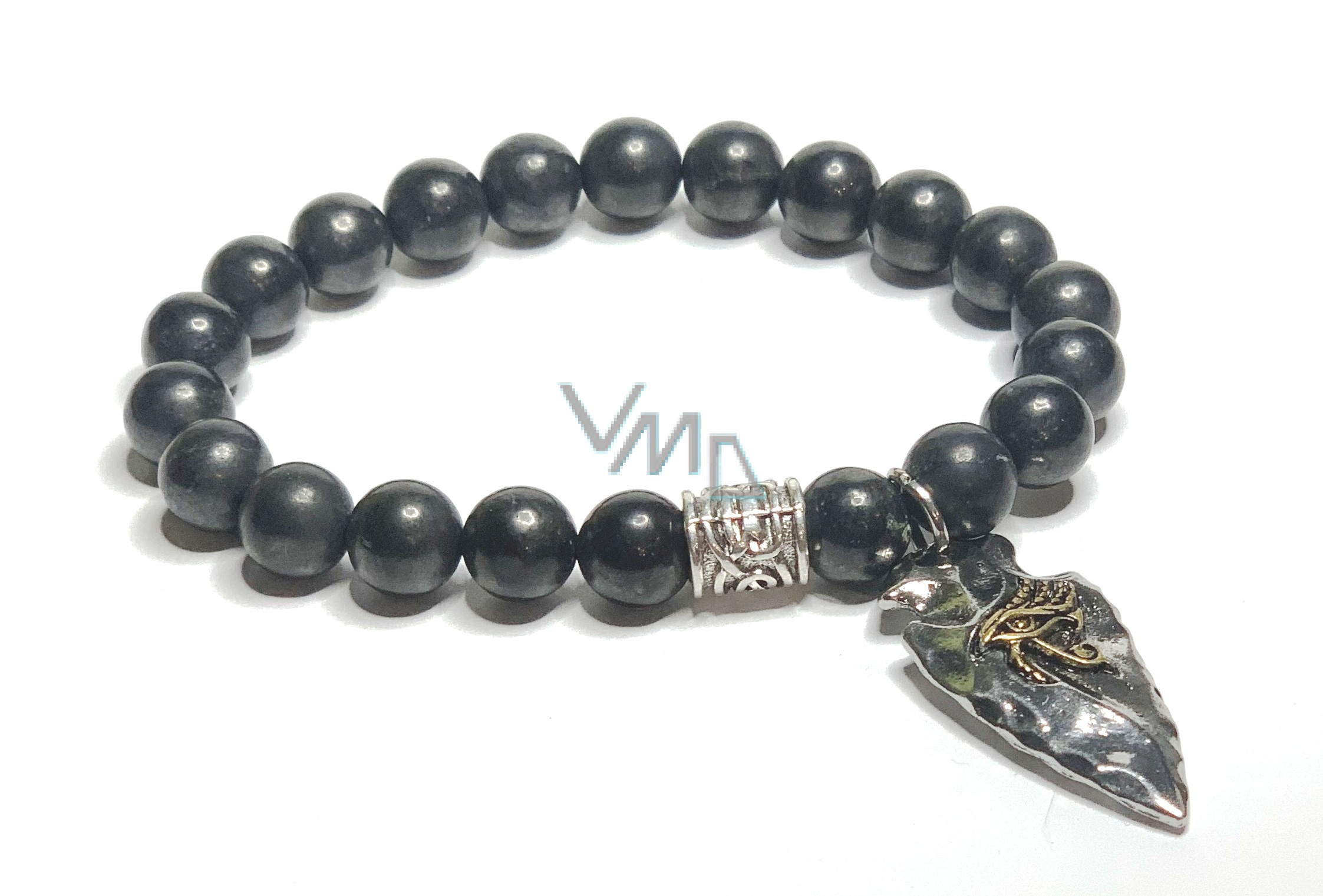 Šungit + Horovo oko náramek elastický přírodní kámen, kulička 8 mm / 16 - 17 cm, kámen života