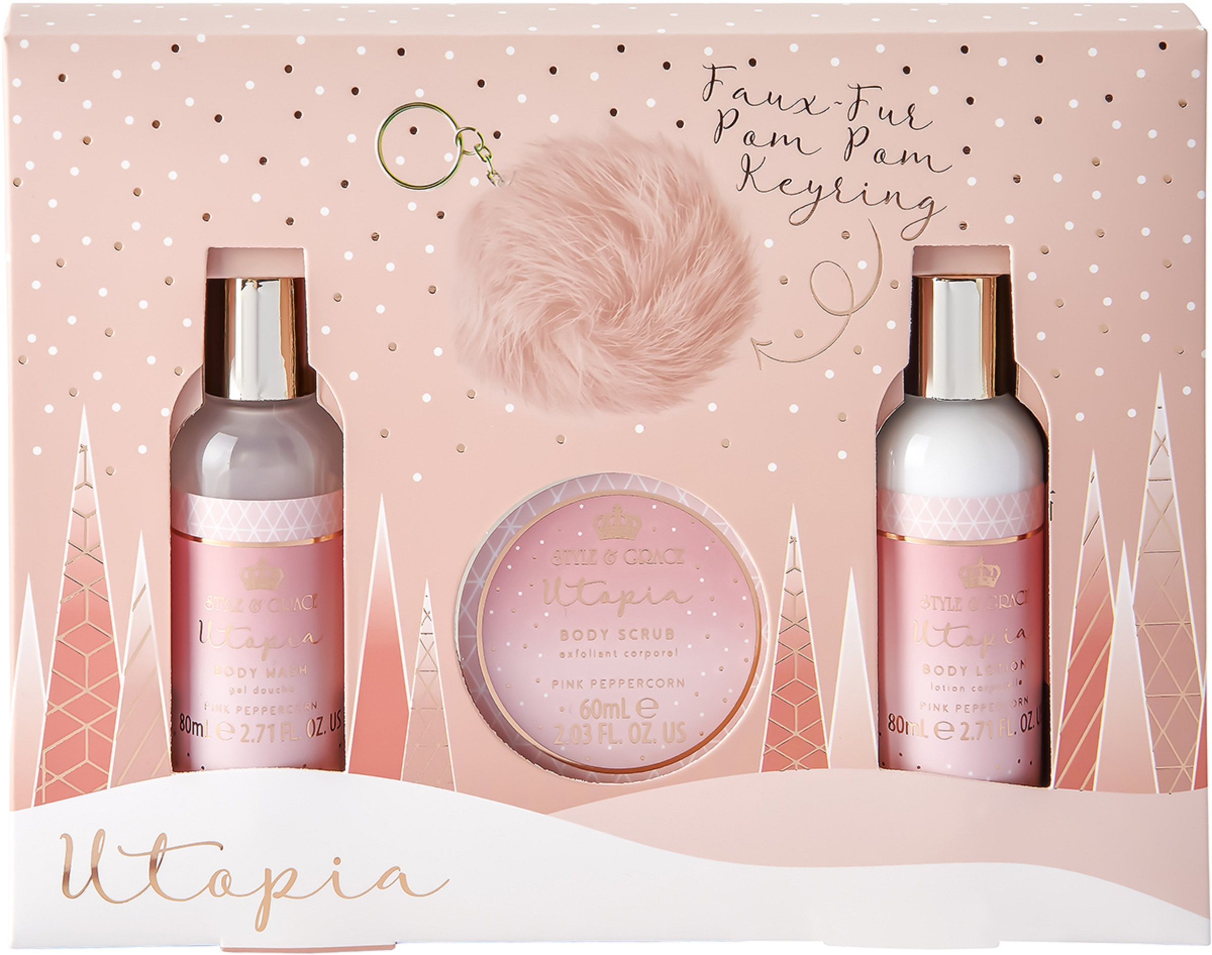 Sunkissed Keyring Gift Set Utopia sprchový gel 80 ml + tělové mléko 80 ml + tělový peeling 60 ml + přívěšek na klíče, kosmetická sada pro ženy