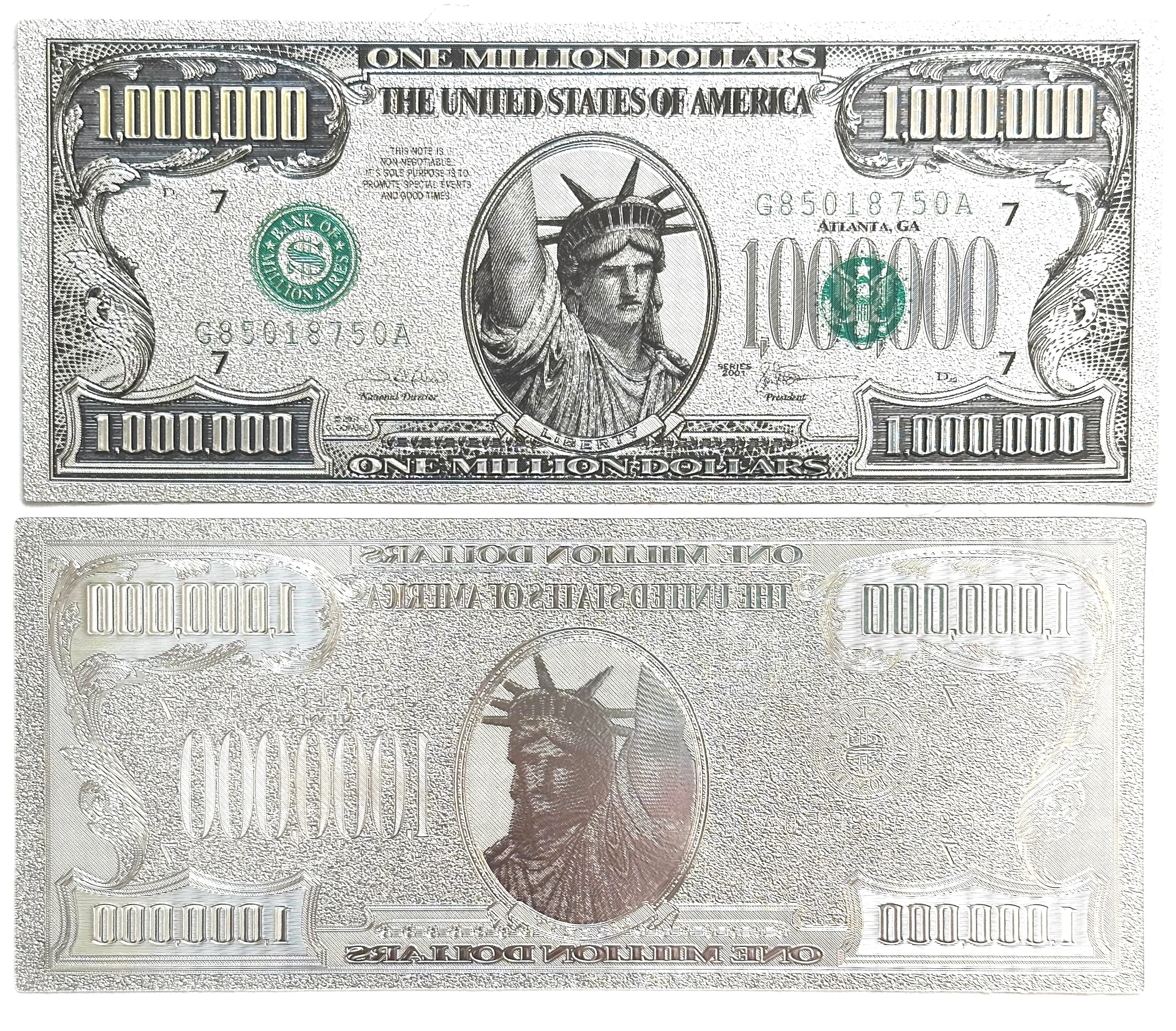 Postříbřená 1 000 000-dolarovka pro cestovatele a lidi, co chtějí přilákat více peněz do své peněženky, bytu, kanceláře.