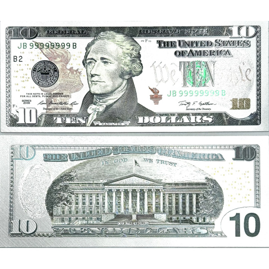 Postříbřená 10-dolarovka pro cestovatele a lidi, co chtějí přilákat více peněz do své peněženky, bytu, kanceláře.