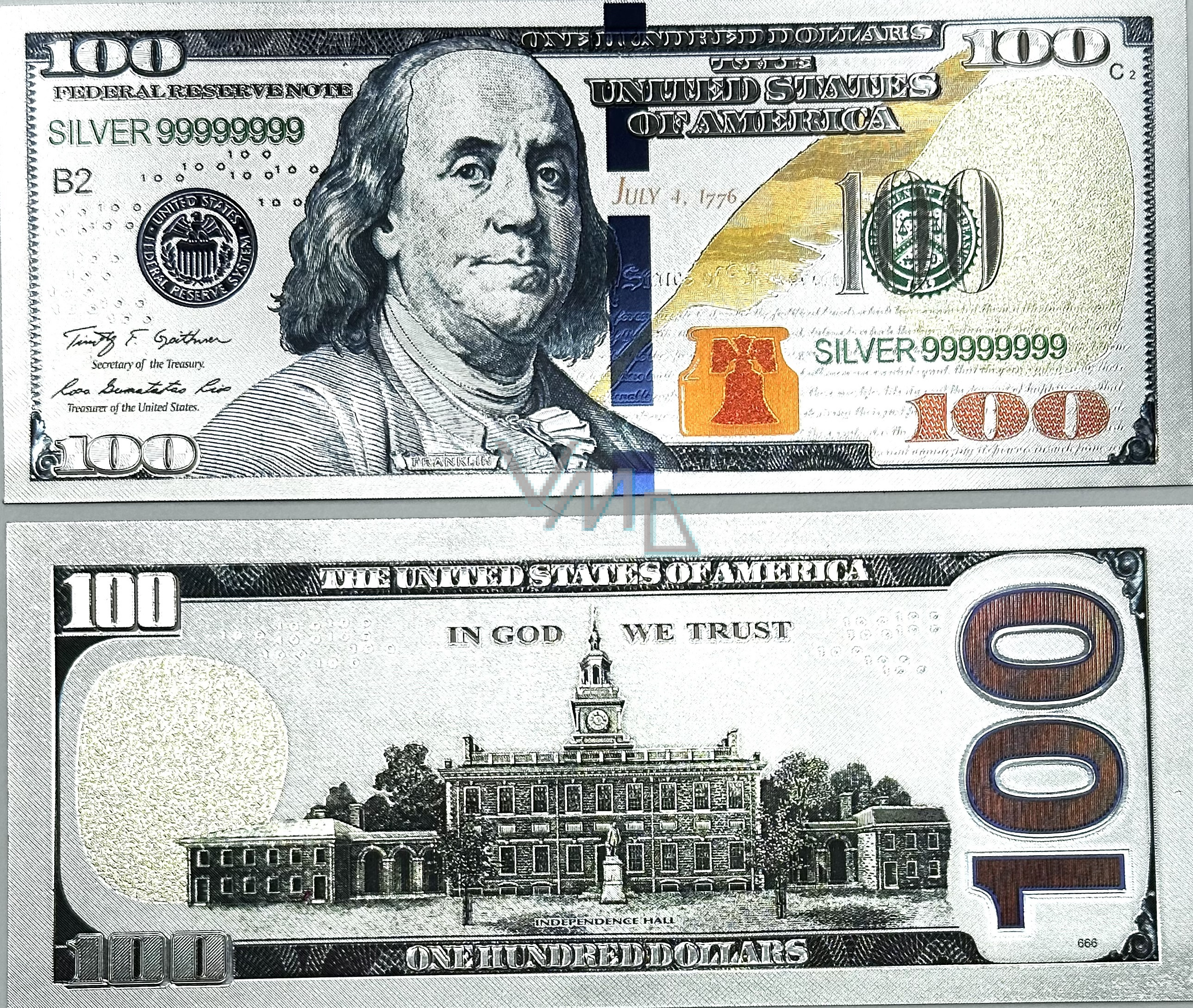 Postříbřená 100-dolarovka pro cestovatele a lidi, co chtějí přilákat více peněz do své peněženky, bytu, kanceláře.