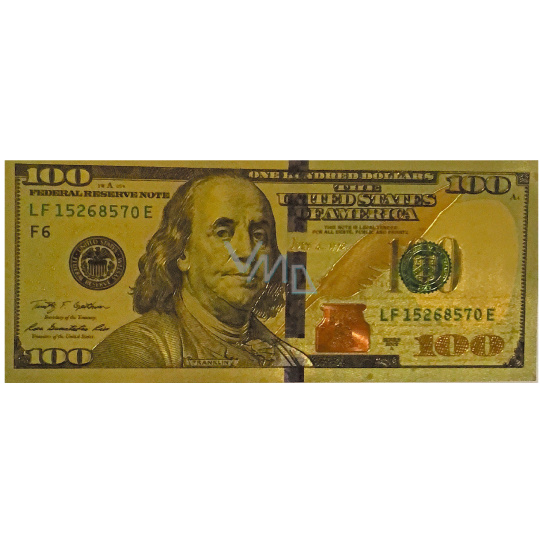 Zlatá 100-dolarovka pro cestovatele a lidi, co chtějí přilákat více peněz do své peněženky, bytu, kanceláře.