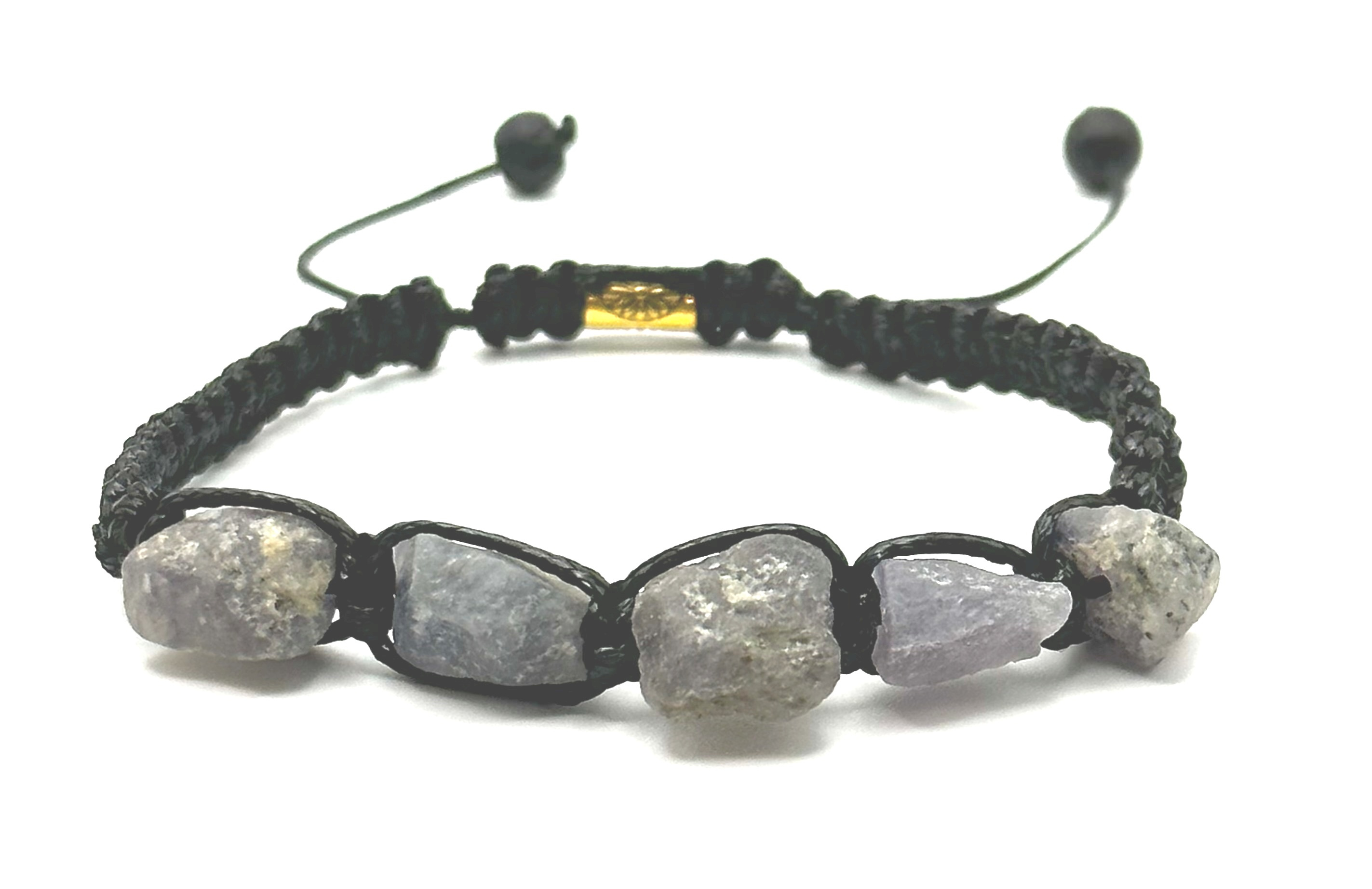 Tanzanit surový náramek přírodní kámen, ručně pletený, nastavitelná velikost