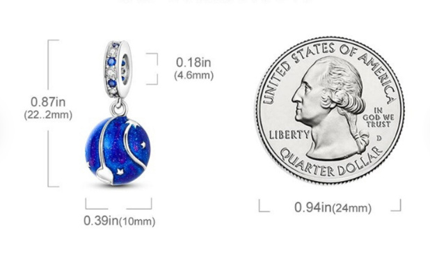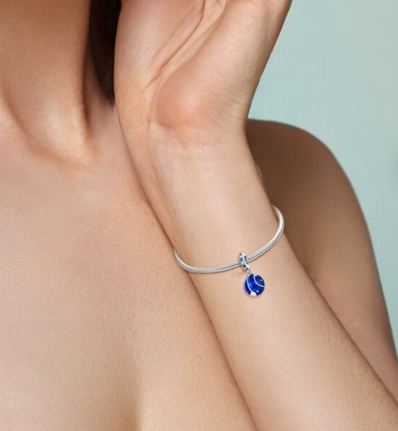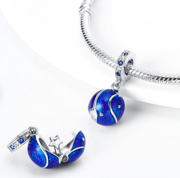Charm Sterlingové stříbro 925 Vesmír tmavě modrá galaxie, hvězda, 2v1 přívěsek na náramek cestování