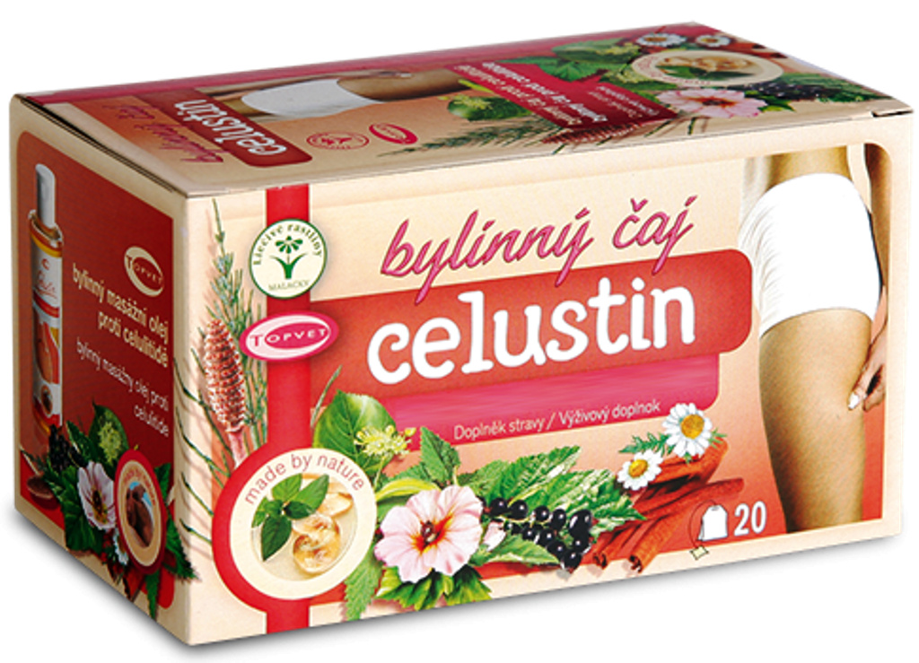 Celustin čaj je přípravek, který obsahuje bylinnou kompozici ze 7 druhů bylin. Je bohatý na Antioxidanty, Antokyany a další aktivní látky. Podporuje žilní cirkulaci. Lepšího výsledku dosáhnete, pokud problémové partie současně procvičíte.
