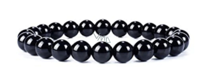 Turmalin Skoryl černý náramek elastický přírodní kámen, kulička 8 mm / 16 - 17 cm, strážce dobré nálady