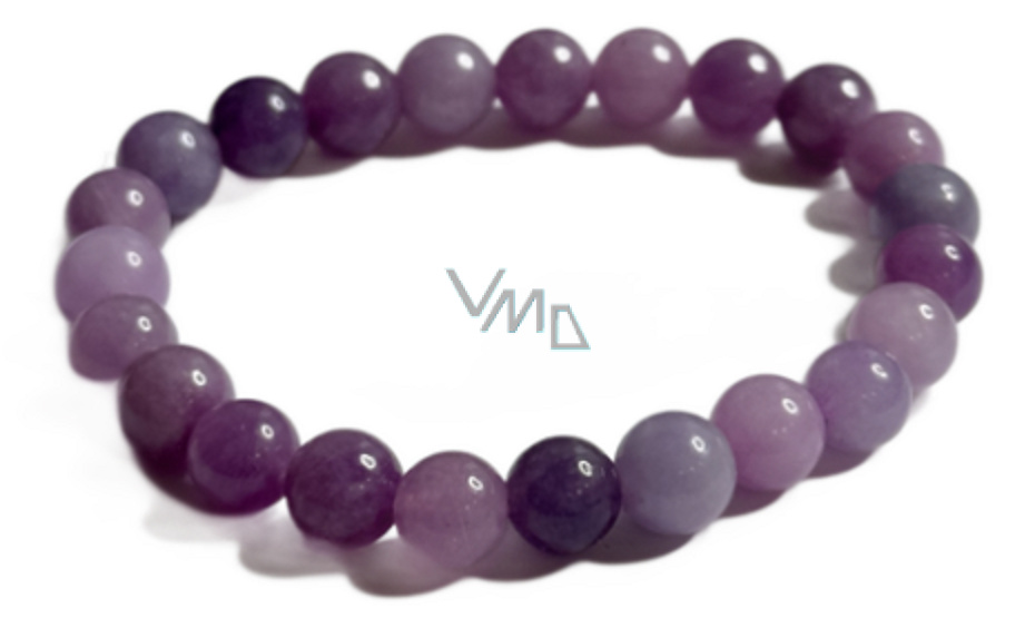 Turmalin levandulový náramek elastický přírodní kámen, kulička 8 mm / 16 - 17 cm, strážce domova a dobré nálady