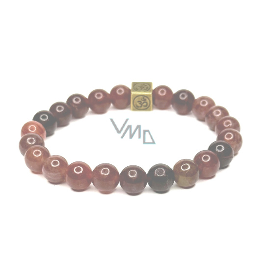 Turmalin s královskou mantrou Óm náramek elastický přírodní kámen, kulička 8 mm / 16 - 17 cm, strážce dobré nálady