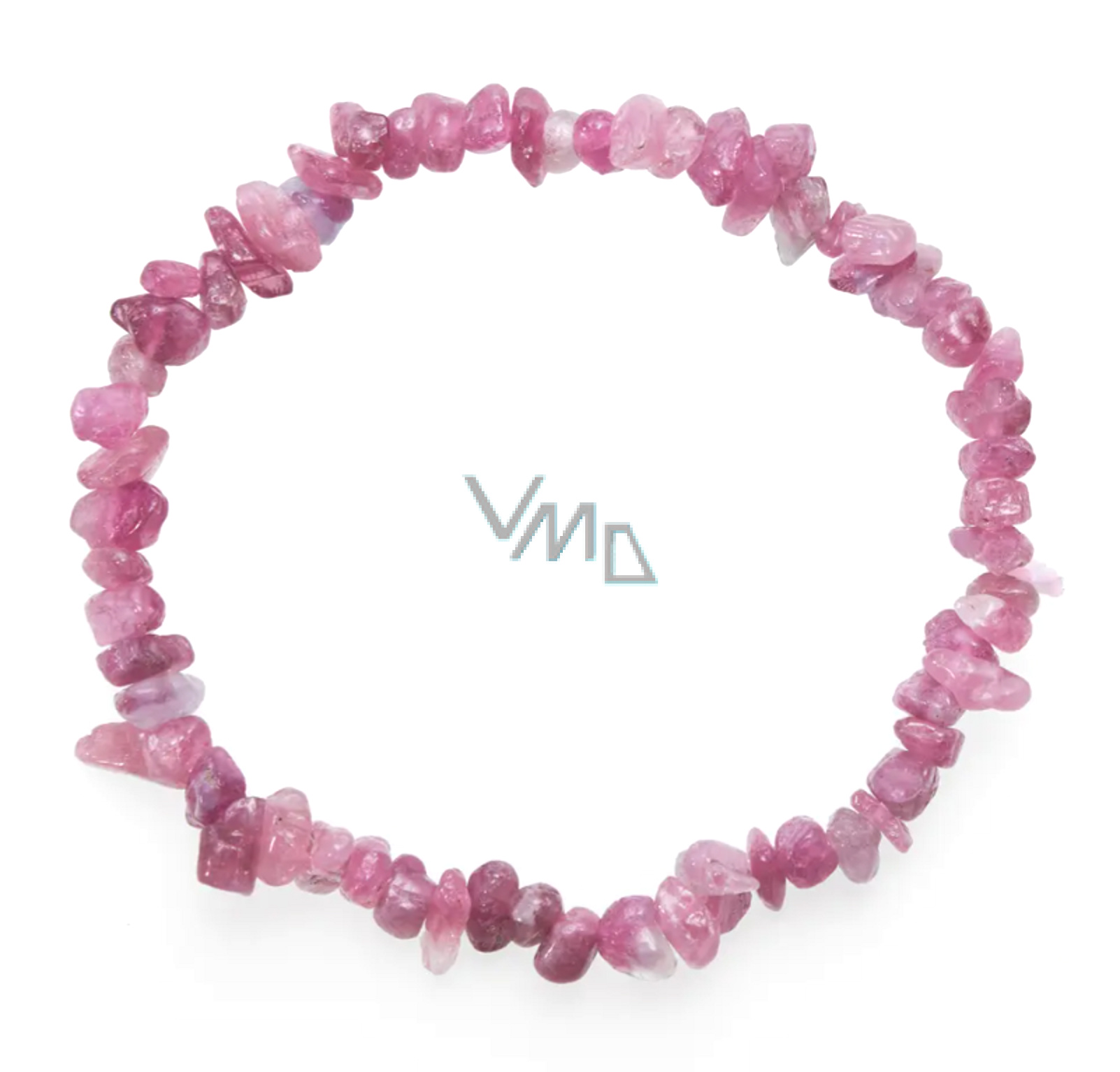 Turmalín Rubelit náramek elastický sekaný přírodní kámen, 19 cm, strážce dobré nálady