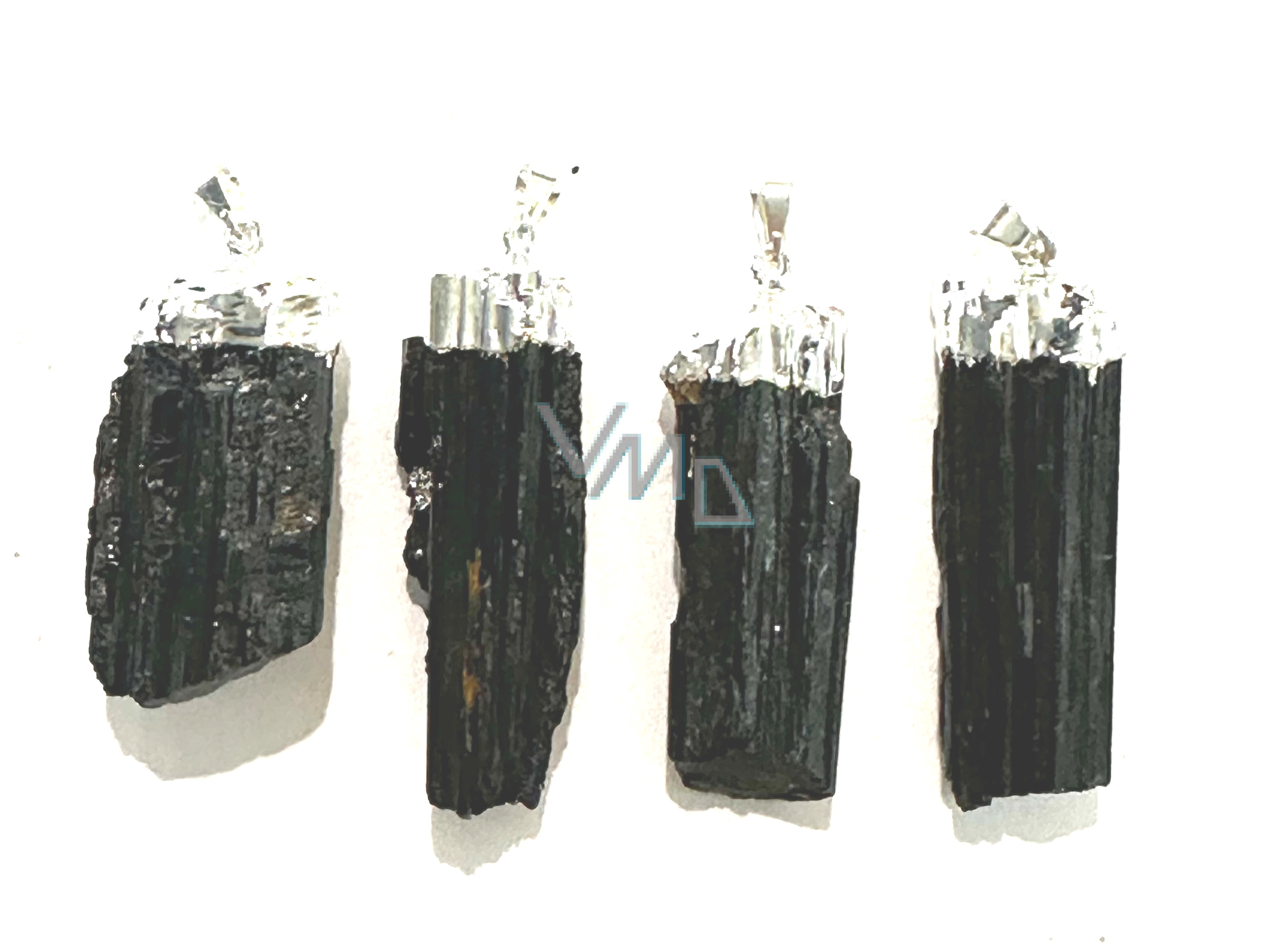 Turmalín Skoryl v kovu přívěsek přírodní kámen cca 3 - 4,5 cm, 1 kus, strážce dobré nálady
