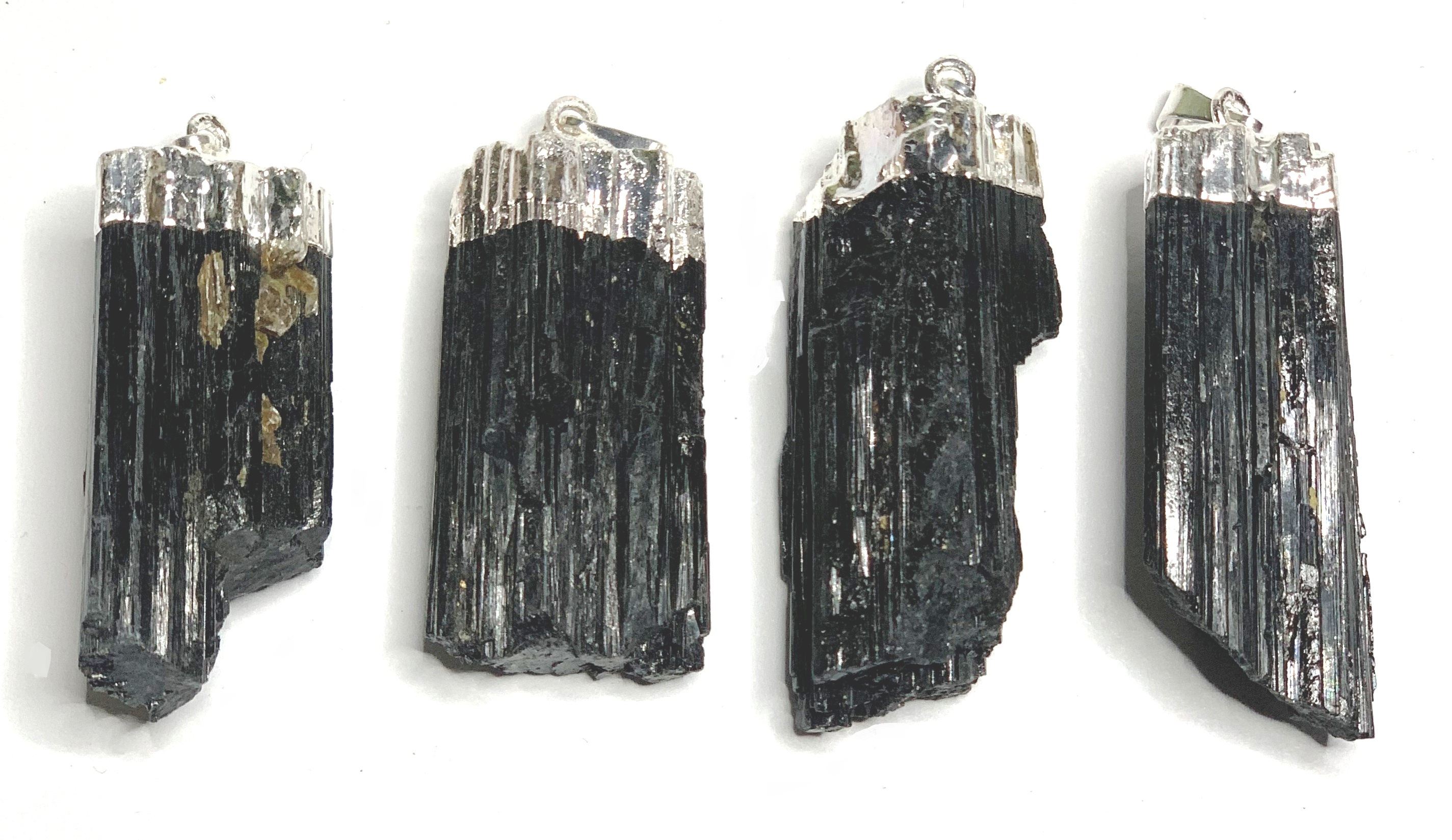 Turmalín Skoryl v kovu přívěsek přírodní kámen cca 3,5 - 5 cm 1 kus, strážce dobré nálady