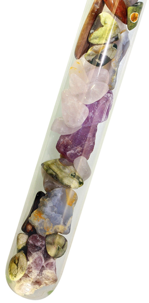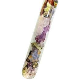 Přinášíme Vám energetickou tyčinku s drahými kameny pro harmonizaci vody Směs 5ti Elementů. Pomocí tyčinky s drahými kameny máte jednoduchou, praktickou, rychlou a hygienicky čistou možnost k harmonizaci vody drahými kameny. Skleněná tyčinka s délkou 25 cm je naplněna malými drahými kameny ze spravedlivého obchodování. Tyčinku doporučujeme před prvním použitím umýt.
