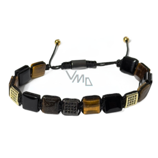 Tygří oko a černý onyx náramek přírodní kámen, velikostně nastavitelný, kámen slunce a země, přináší štěstí a bohatství a kámen životní síly
