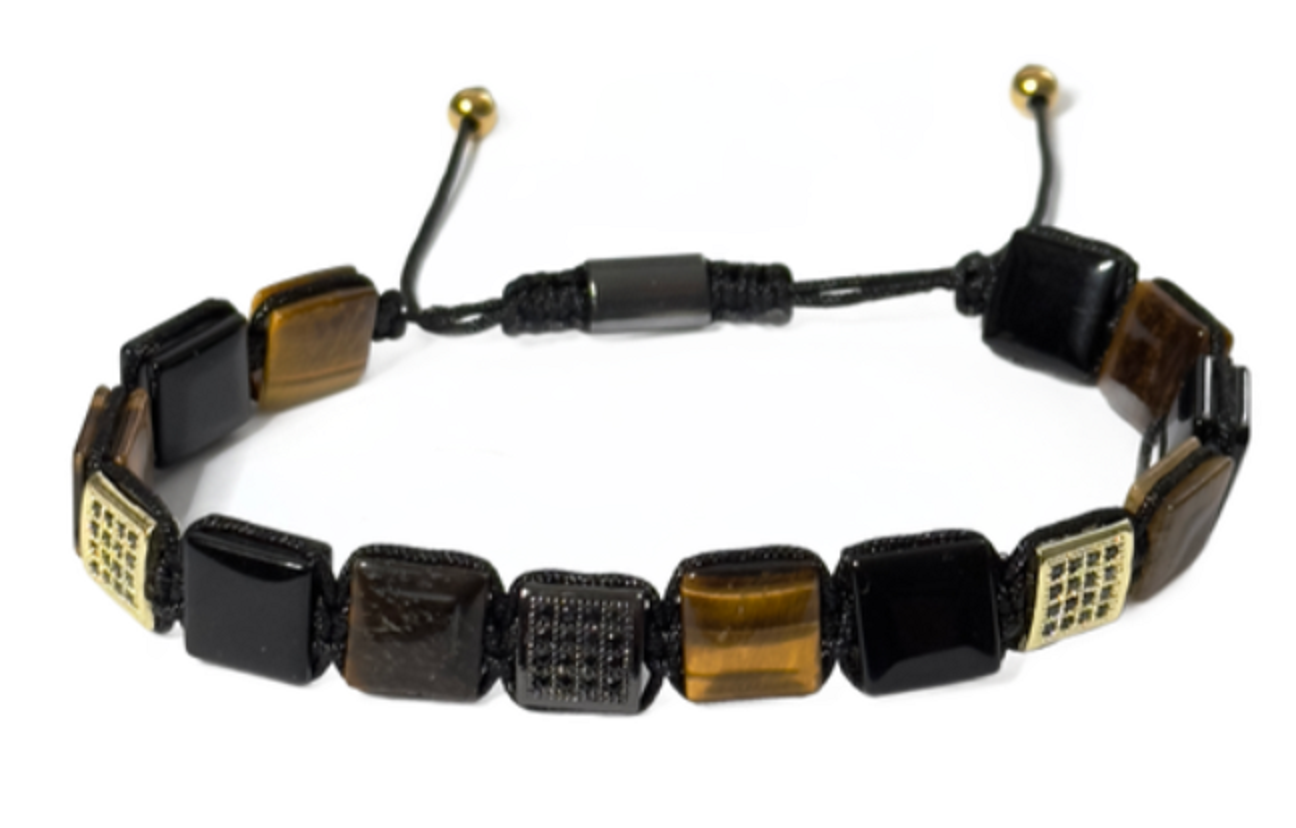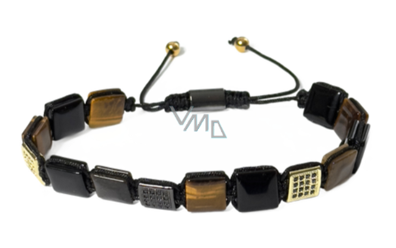 Tygří oko a černý onyx náramek přírodní kámen, velikostně nastavitelný, kámen slunce a země, přináší štěstí a bohatství a kámen životní síly