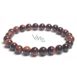 Tygří oko červené / Býčí oko náramek elastický přírodní kámen, kulička 8 mm / 16 - 17 cm, kámen slunce a země, přináší štěstí a bohatství