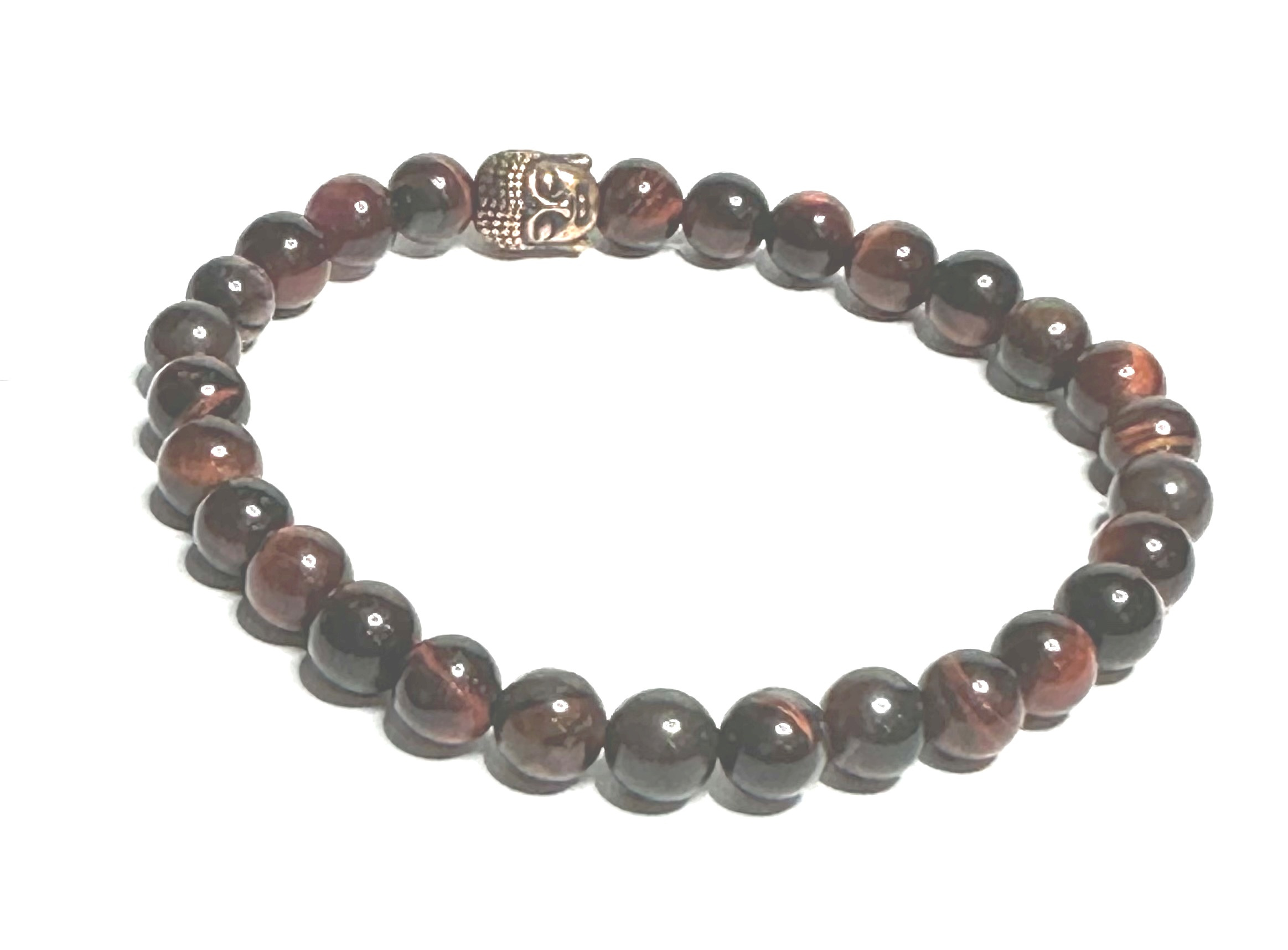 Tygří oko červené / Býčí oko náramek elastický přírodní kámen, kulička 6 mm / 16 - 17 cm, kámen slunce a země, přináší štěstí a bohatství