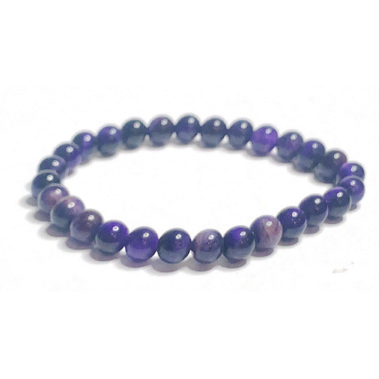 Tygří oko fialové náramek elastický přírodní kámen, kulička 6 mm / 16 - 17 cm, kámen slunce a země, přináší štěstí a bohatství