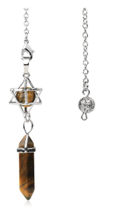 Tygří oko Merkaba + kyvadlo, přívěsek přírodní kámen 71 x 8 x 8 mm
