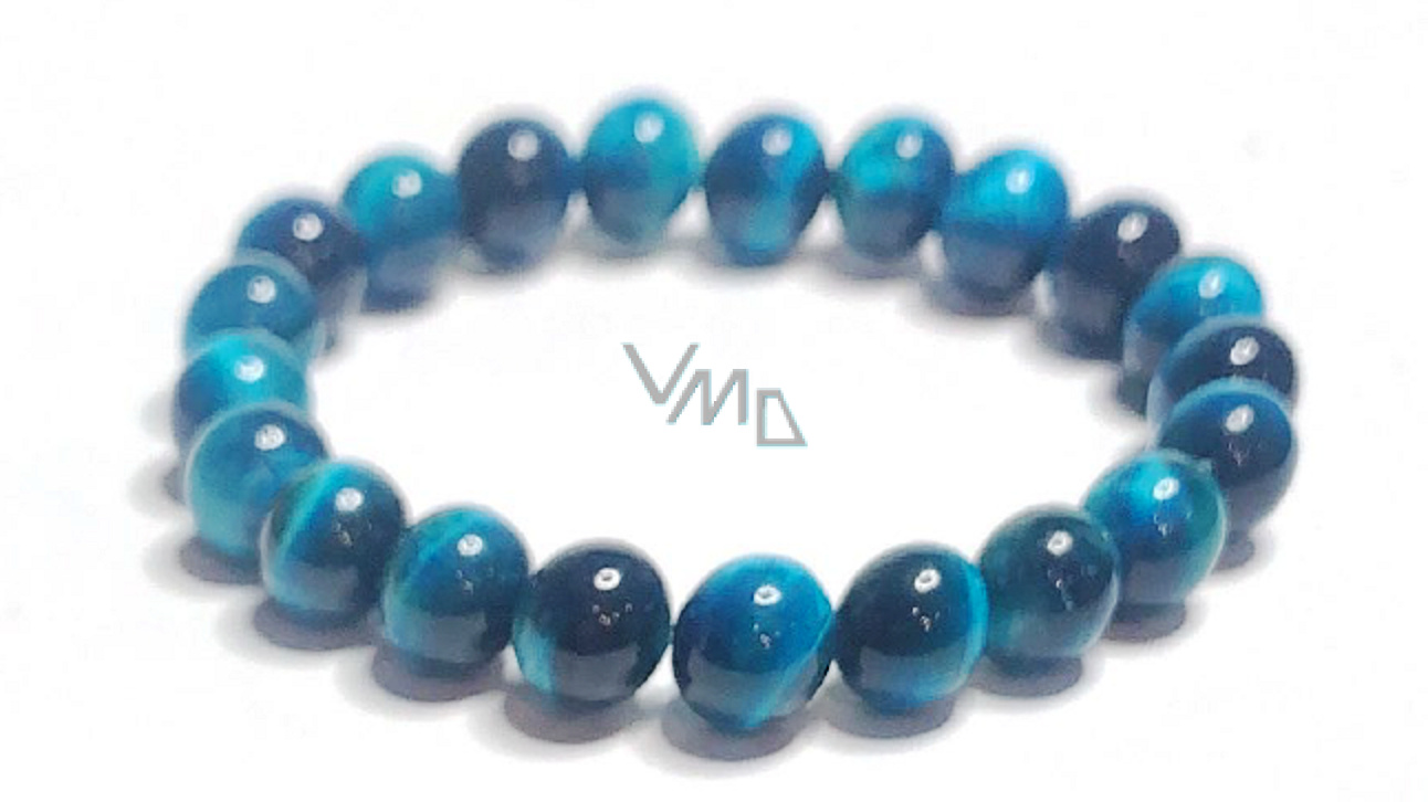 Tygří oko modré náramek elastický přírodní kámen, kulička 8 mm / 16 - 17 cm, kámen slunce a země, přináší štěstí a bohatství