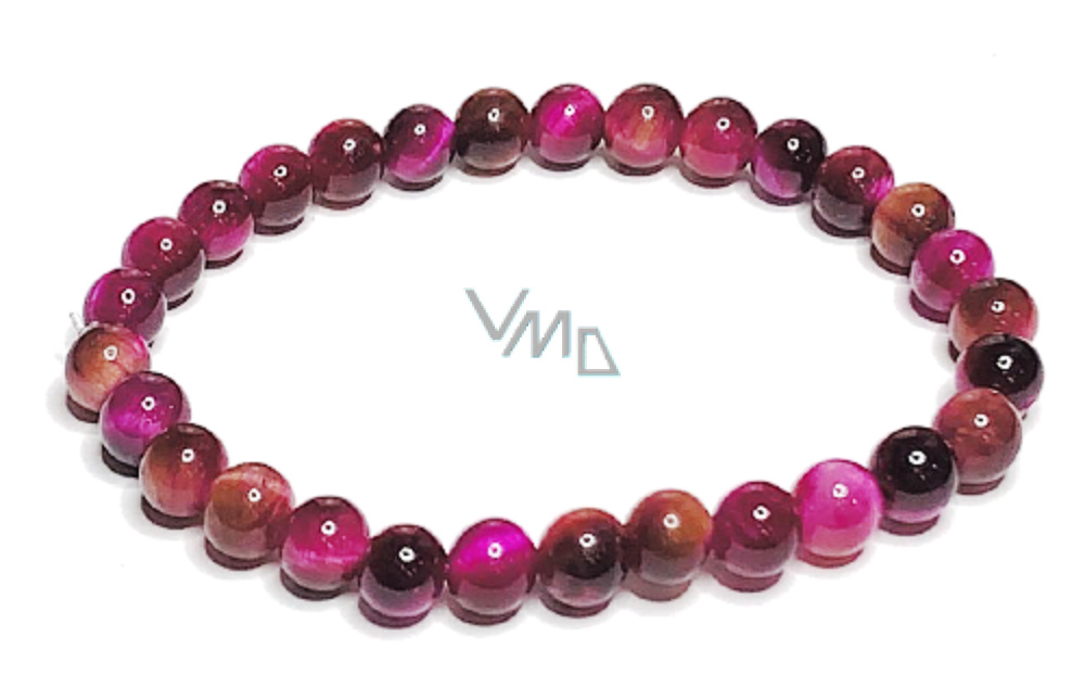 Tygří oko růžové náramek elastický přírodní kámen, kulička 6 mm / 16 - 17 cm, kámen slunce a země, přináší štěstí a bohatství