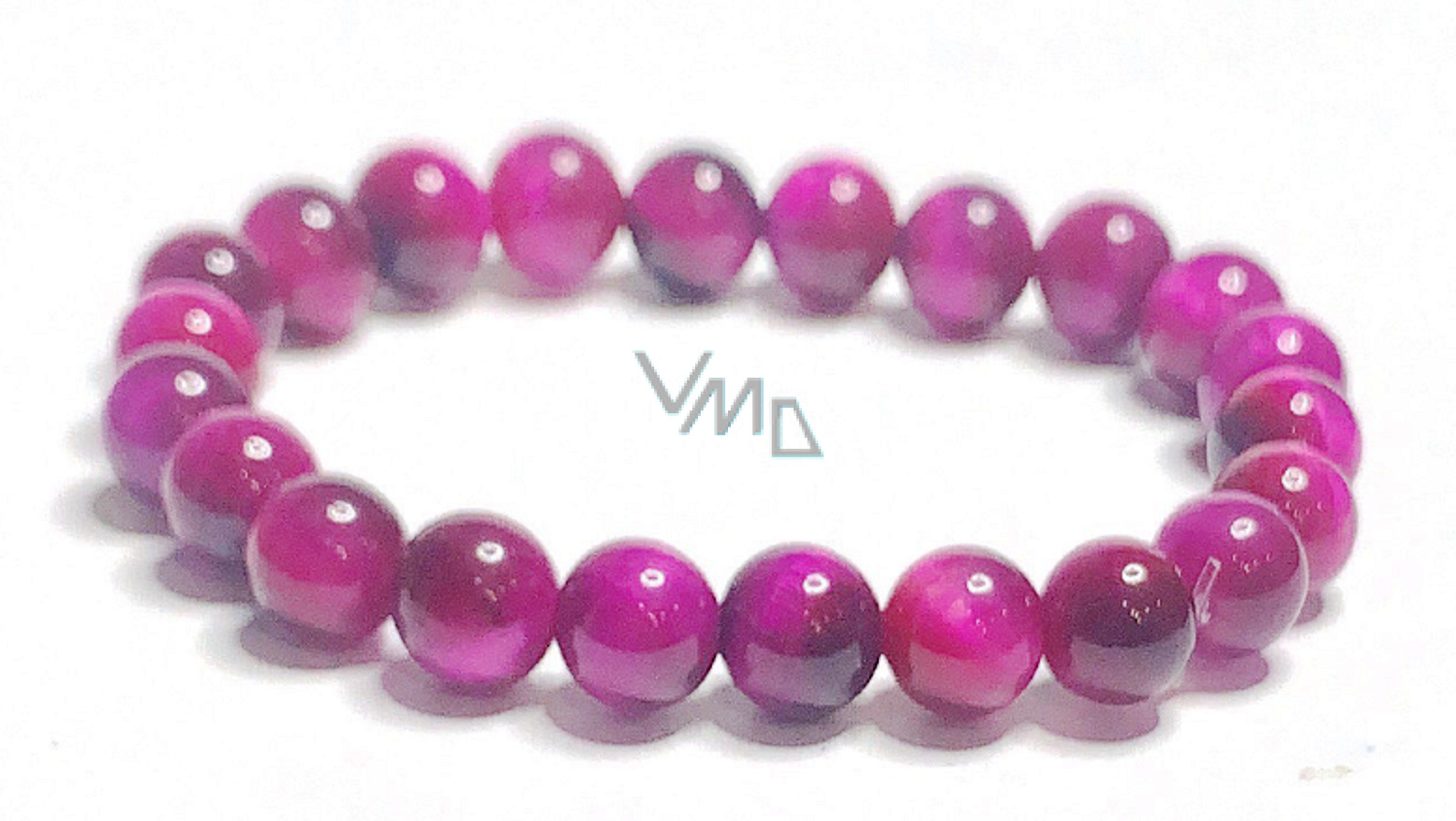 Tygří oko růžové náramek elastický přírodní kámen, kulička 8 mm / 16 - 17 cm, kámen slunce a země, přináší štěstí a bohatství