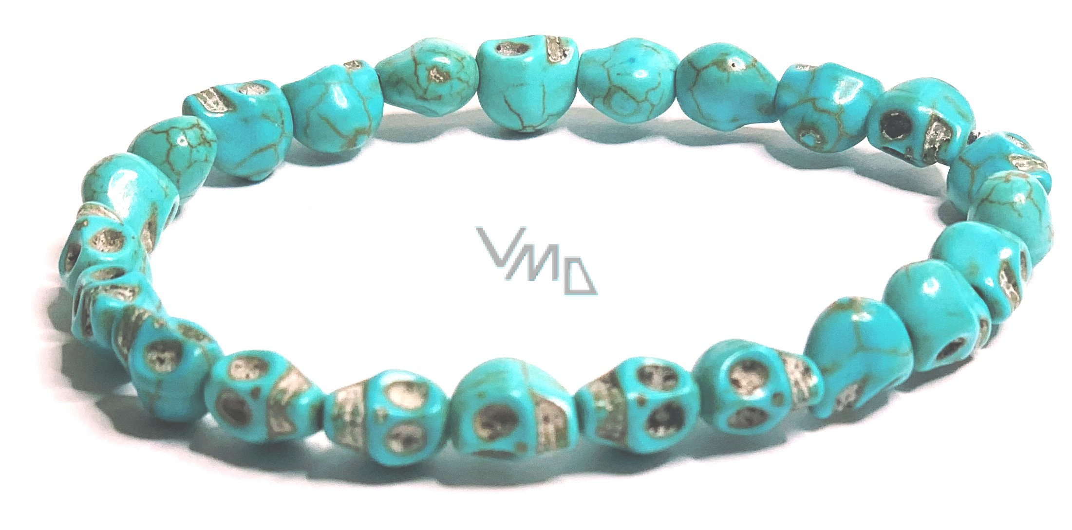 Tyrkenit Lebka ručně vyřezaná náramek elastický přírodní kámen 8 mm / 16 - 17 cm, kámen mladých lidí, hledá životní cíl