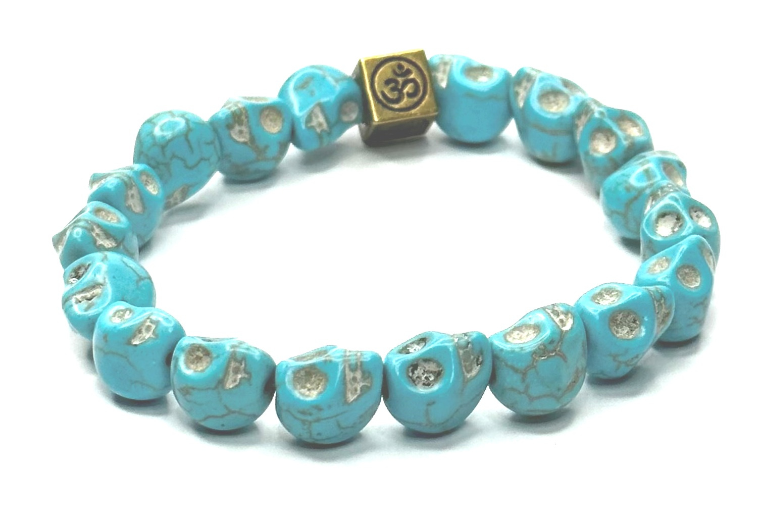 Tyrkenit Lebka ručně vyřezaná s královskou mantrou Óm náramek elastický přírodní kámen 8 x 10 mm / 16 - 17 cm, kámen mladých lidí, hledá životní cíl