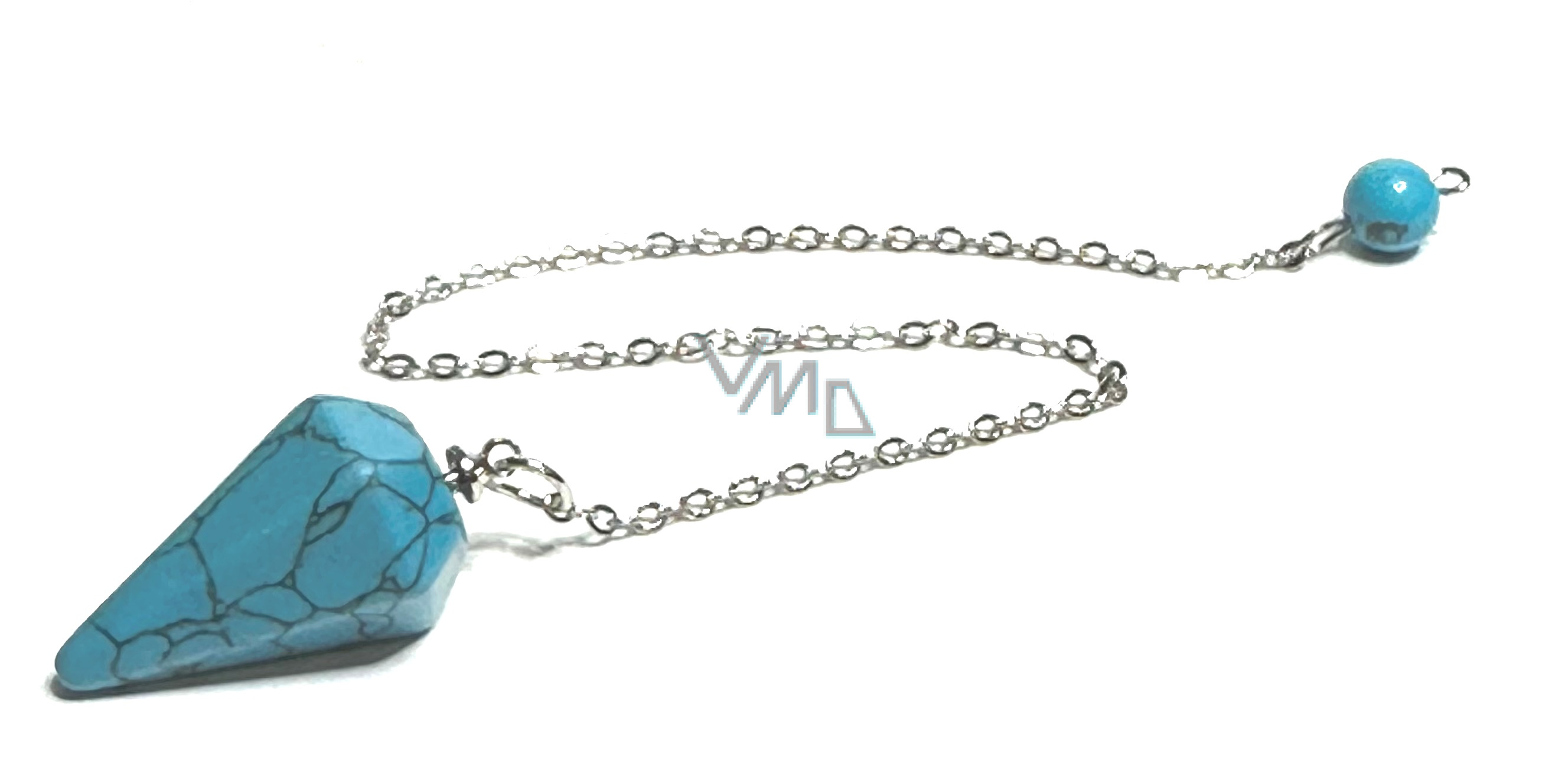 Tyrkenit modrý kyvadlo 2,5 cm + 18 cm řetízek s korálkou, kámen mladých lidí, hledá životní cíl