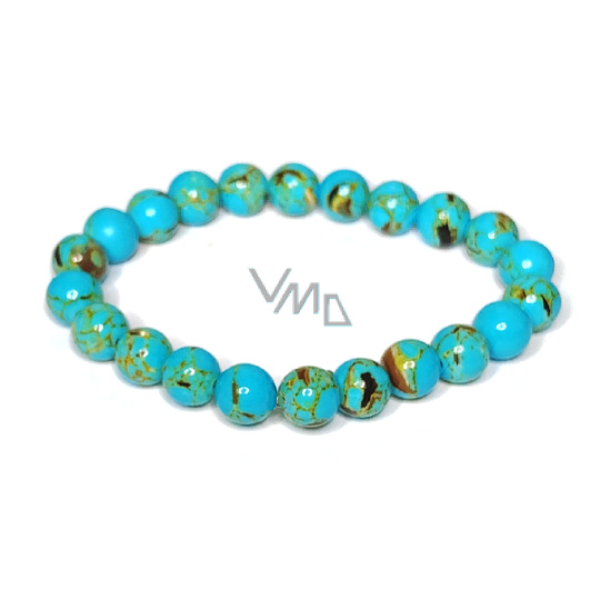 Tyrkenit modrý náramek elastický, kulička 8 mm / 16 - 17 cm, kámen mladých lidí, hledá životní cíl