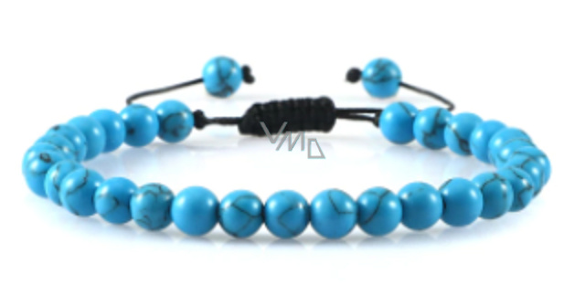 Tyrkenit modrý náramek přírodní kámen, ručně pletený, nastavitelná velikost kulička 6 mm, kámen mladých lidí, hledá životní cíl