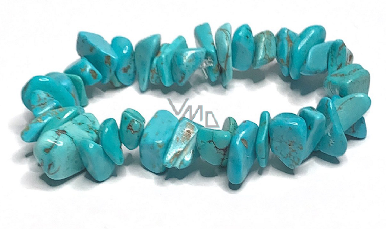 Tyrkenit náramek elastický sekaný přírodní kámen, 19 cm drcený větší kousky, kámen mladých lidí, hledá životní cíl