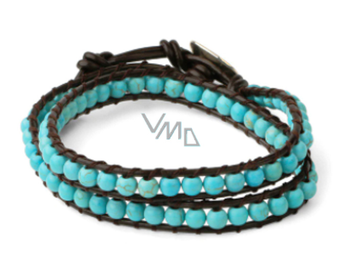 Tyrkenit kožený černý náramek přírodní kámen zavinovací 2 prameny ručně pletený kulička 6 mm / 35 cm, kámen mladých lidí, hledá životní cíl