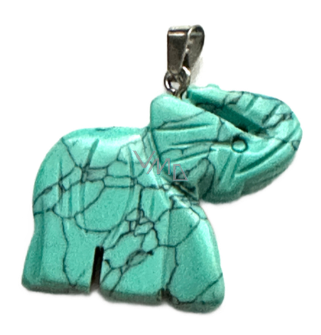 Tyrkenit Slon přívěsek přírodní kámen, ručně broušená figurka 32 x 45 mm, kámen mladých lidí, hledá životní cíl