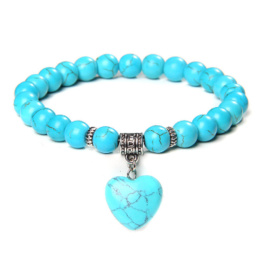 Tyrkenit + Srdce náramek elastický z přírodního kamene, kulička 8 mm / 19 cm, kámen mladých lidí, hledá životní cíl