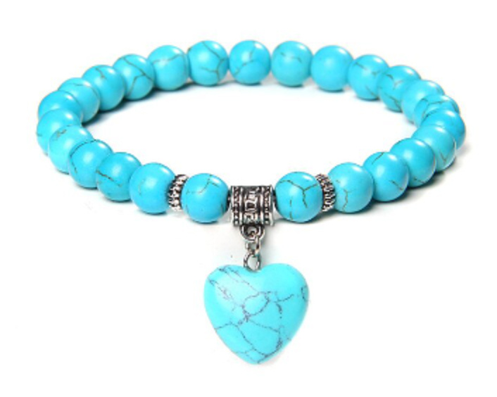 Tyrkenit + Srdce náramek elastický přírodní kámen, kulička 8 mm / 23 cm, kámen mladých lidí, hledá životní cíl