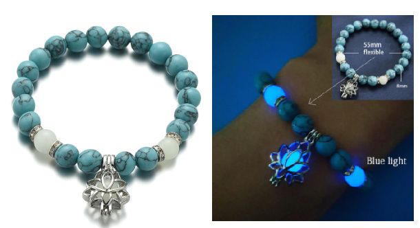 Tyrkenit svítící ve tmě modře, náramek elastický přírodní kámen, kulička 8 mm / 16 - 17 cm, kámen mladých lidí, hledá životní cíl