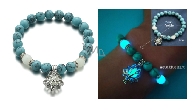 Tyrkenit svítící ve tmě světle-modře, náramek elastický přírodní kámen, kulička 8 mm / 16 - 17 cm, kámen mladých lidí, hledá životní cíl