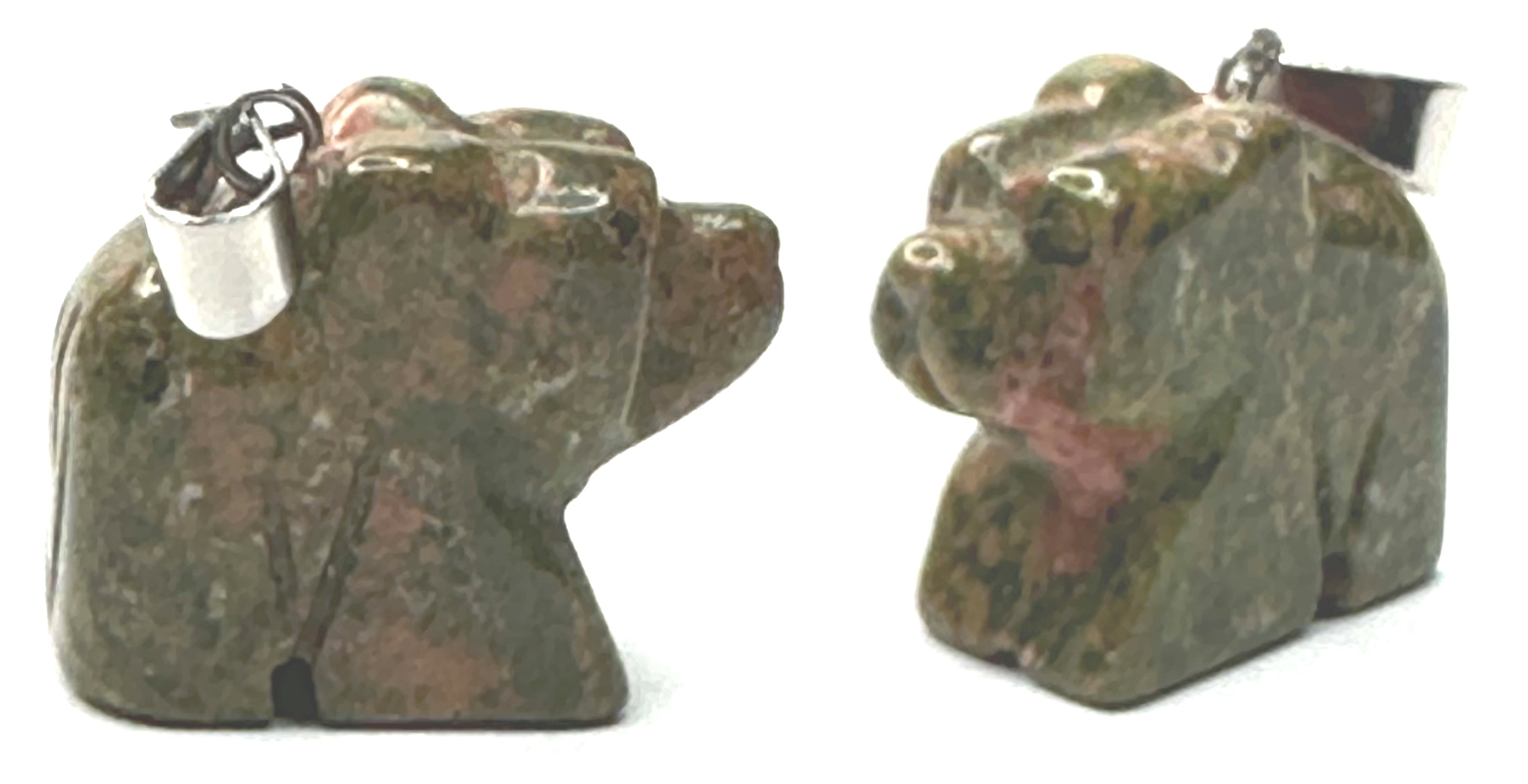 Unakit Medvěd přívěsek přírodní kámen, ručně broušená figurka 1,8 x 2,5 x 8 mm, kámen osobního růstu a vizí