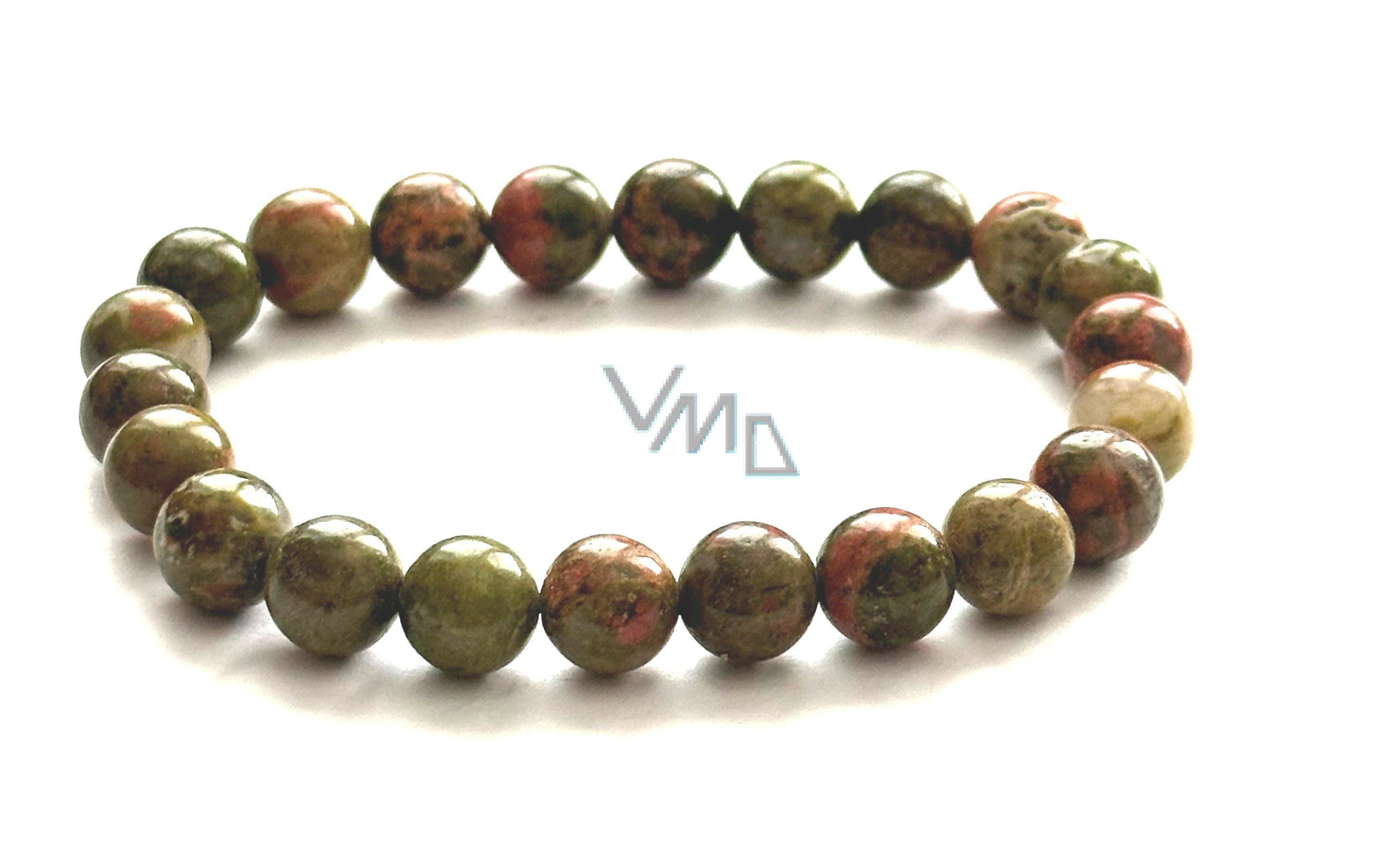 Unakit náramek elastický přírodní kámen, kulička 8 mm / 16 - 17 cm, kámen osobního růstu a vizí, uvolnění