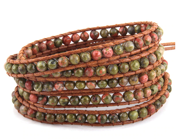 Unakit náramek přírodní kámen zavinovací 5 pramenů ručně pletený kulička 4 mm / cca 90 cm + 10 cm, kámen osobního růstu a vizí