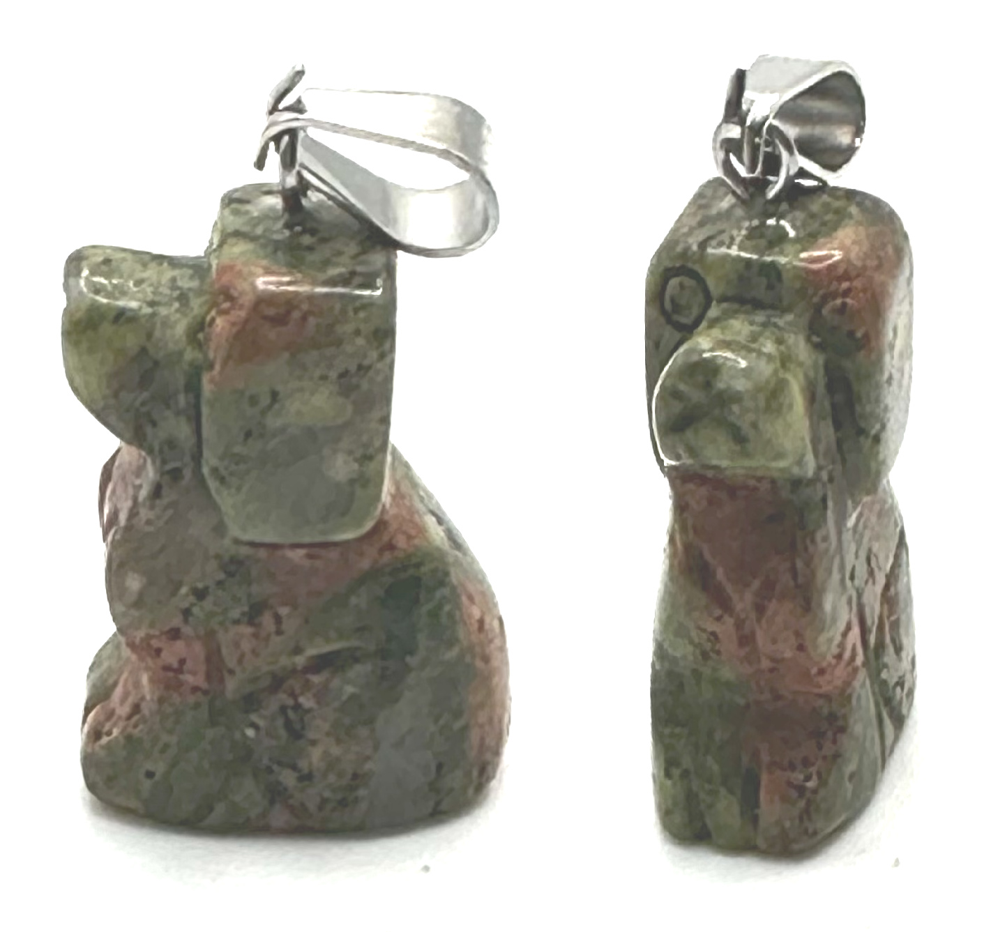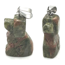 Unakit Pes přívěsek přírodní kámen, ručně broušená figurka 1,8 x 2,5 x 8 mm, kámen osobního růstu a vizí