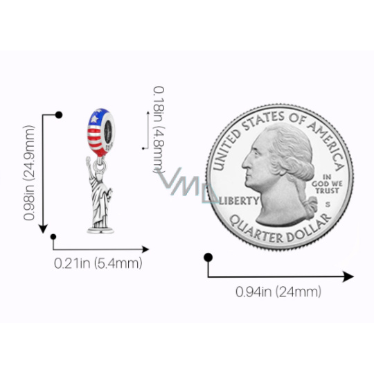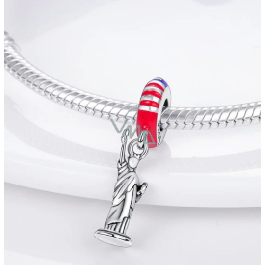 Charm Sterlingové stříbro 925 USA Americká vlajka - Socha Svobody, přívěsek na náramek cestování