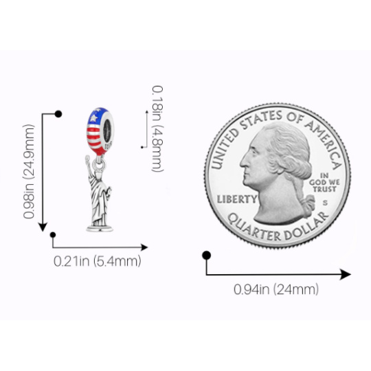 Přemýšlíte, co si přivezete z výletu z USA? Kupte si tento stříbrný přívěsek na náramek s motivem Sochy Svobody a vzpomeňte si na tento výlet, kdykoliv se podíváte na svůj náramek.