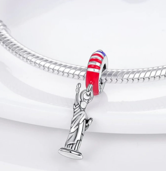 Přemýšlíte, co si přivezete z výletu z USA? Kupte si tento stříbrný přívěsek na náramek s motivem Sochy Svobody a vzpomeňte si na tento výlet, kdykoliv se podíváte na svůj náramek.