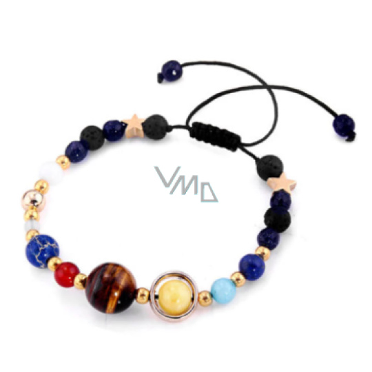 Čakrový náramek - Planety sluneční soustavy, přírodní kámen, ručně pletený, nastavitelná velikost