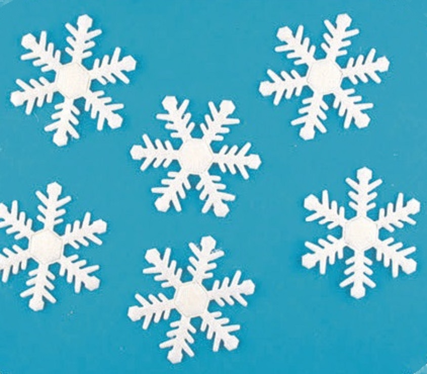 Vločka bílá glitrová s lepíkem v sáčku 6 cm 6 kusů