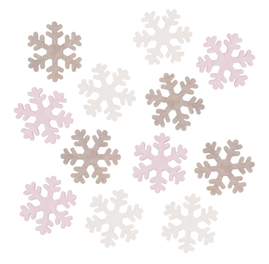 Vločky dřevěné béžová, hnědá, světle růžová 4 cm 12 kusů